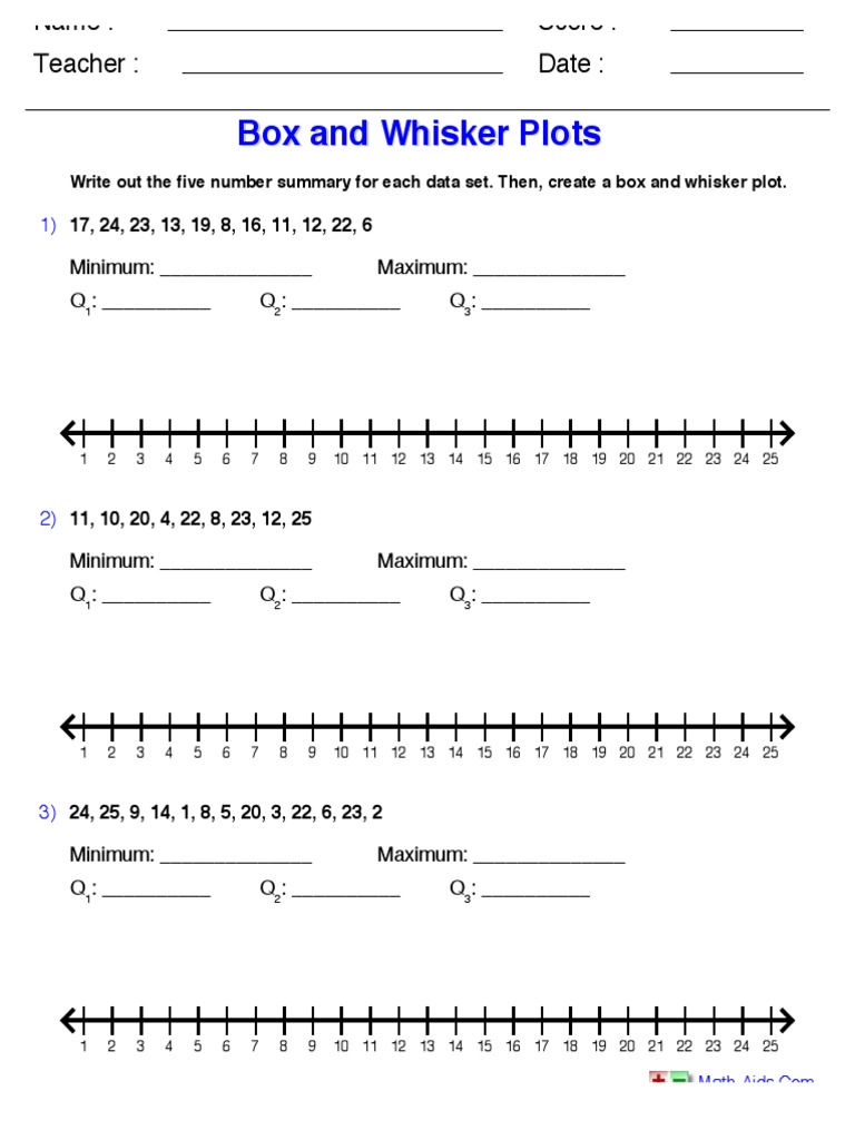 Box and whisker plot math worksheets. Box Plot (Box and Whisker Plot) Worksheets With these printable worksheets, you can help students learn to read and create box plots (also known as box and whisker plots). Common Core CCSS: 6.SP.B.4 Exponents Worksheets - Math Worksheets 4 Kids This assortment of printable exponents worksheets designed for grade 6, grade 7, grade 8, and high school is both meticulous and prolific. As well as cracking the distinctly advantageous aspects of exponents, a unique math shorthand used to denote repeated multiplication, students gain an in-depth knowledge of parts of an exponential notation, converting an expression with exponents to a ... Box Plot (Definition, Parts, Distribution, Applications ... That means box or whiskers plot is a method used for depicting groups of numerical data through their quartiles graphically. These may also have some lines extending from the boxes or whiskers which indicates the variability outside the lower and upper quartiles, hence the terms box-and-whisker plot and box-and-whisker diagram. Box and Whisker Plot Worksheets - Math Worksheets 4 Kids Box-and-whisker plot worksheets have skills to find the five-number summary, to make plots, to read and interpret the box-and-whisker plots, to find the quartiles, range, inter-quartile range and outliers. Word problems are also included. These printable exercises cater to the learning requirements of students of grade 6 through high school.